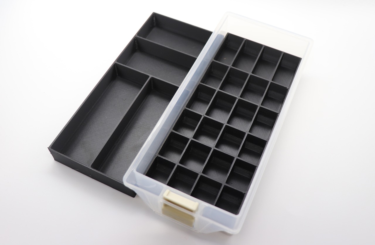 下段側にはワッシャーなどの薄いものもバラけないように凹凸ストッパーをあしらっています。